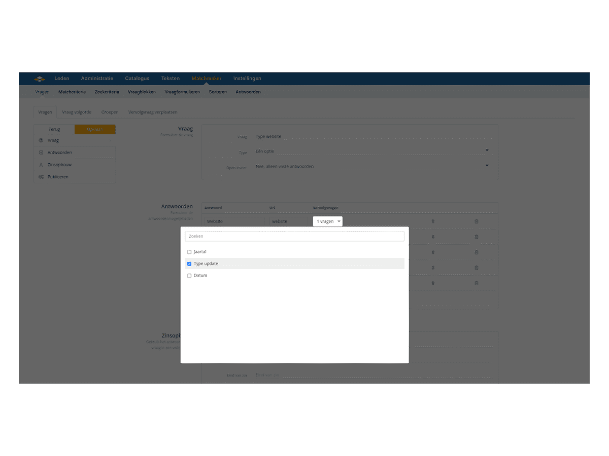 - Stellen Sie sicher, dass alle Fragen zuerst als normale Fragen hinzugefügt werden. Gehen Sie dazu zu SiteCMS> Matchmaker> Fragen.