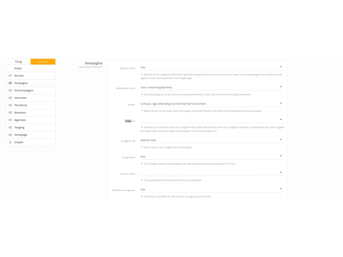 Für jede Verwaltungsgruppe können Sie festlegen, welcher Frageblock für das Thumbnail und für die Detailseite verwendet wird. Für die Profilseite sind diese standardmäßig bereits verknüpft und dieser Schritt muss nicht durchgeführt werden. Stellen Sie sicher, dass die Verwaltungsgruppe und die Frageblöcke zuerst korrekt hinzugefügt werden.