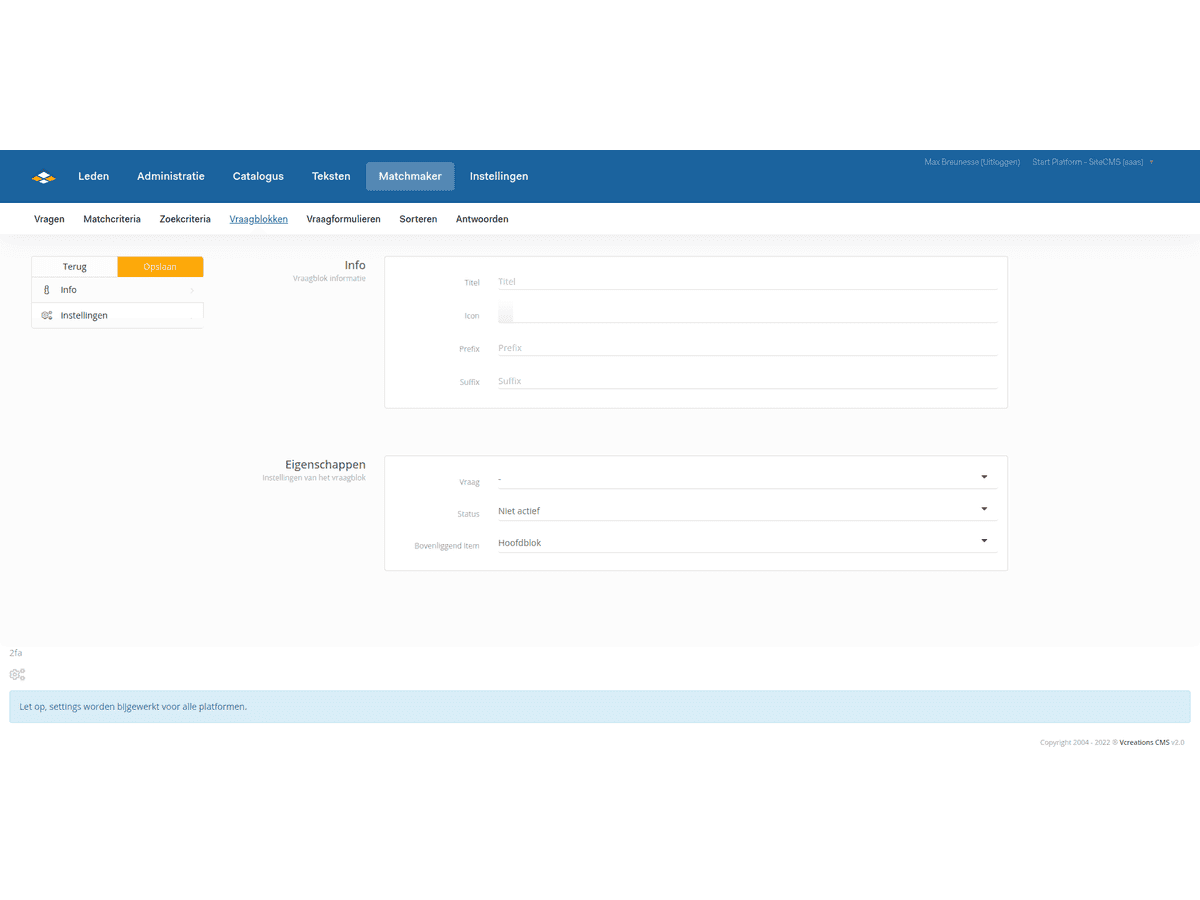 1. Gehen Sie zu SiteCMS> Matchmaker> Frageblöcke. Sie gelangen nun zur Übersicht aller Frageblöcke