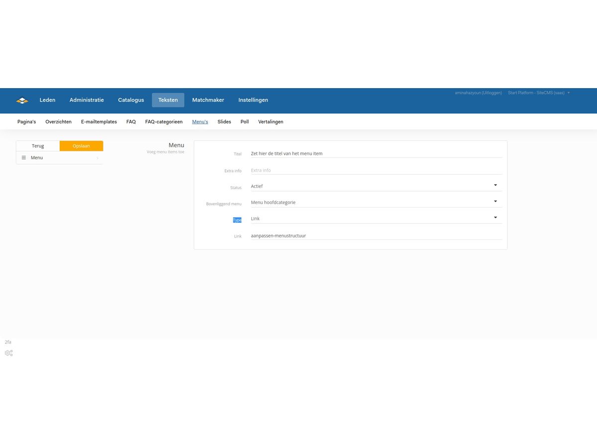 - Gehen Sie zu 'Texte' > 'Menüs'. Für Webshops gehen Sie zu: 'Einstellungen' > 'Menüs'