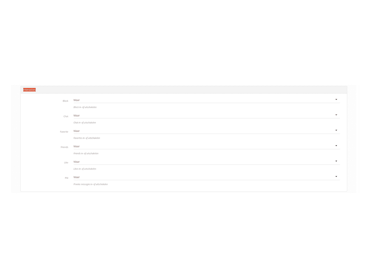 Interaktionen: Eine Leiste mit möglichen Interaktionen wird im Profil angezeigt. Natürlich kannst du bestimmen, welche Interaktionen du für deine Plattform relevant findest. Du kannst diese Interaktionen einfach auf wahr oder falsch setzen.