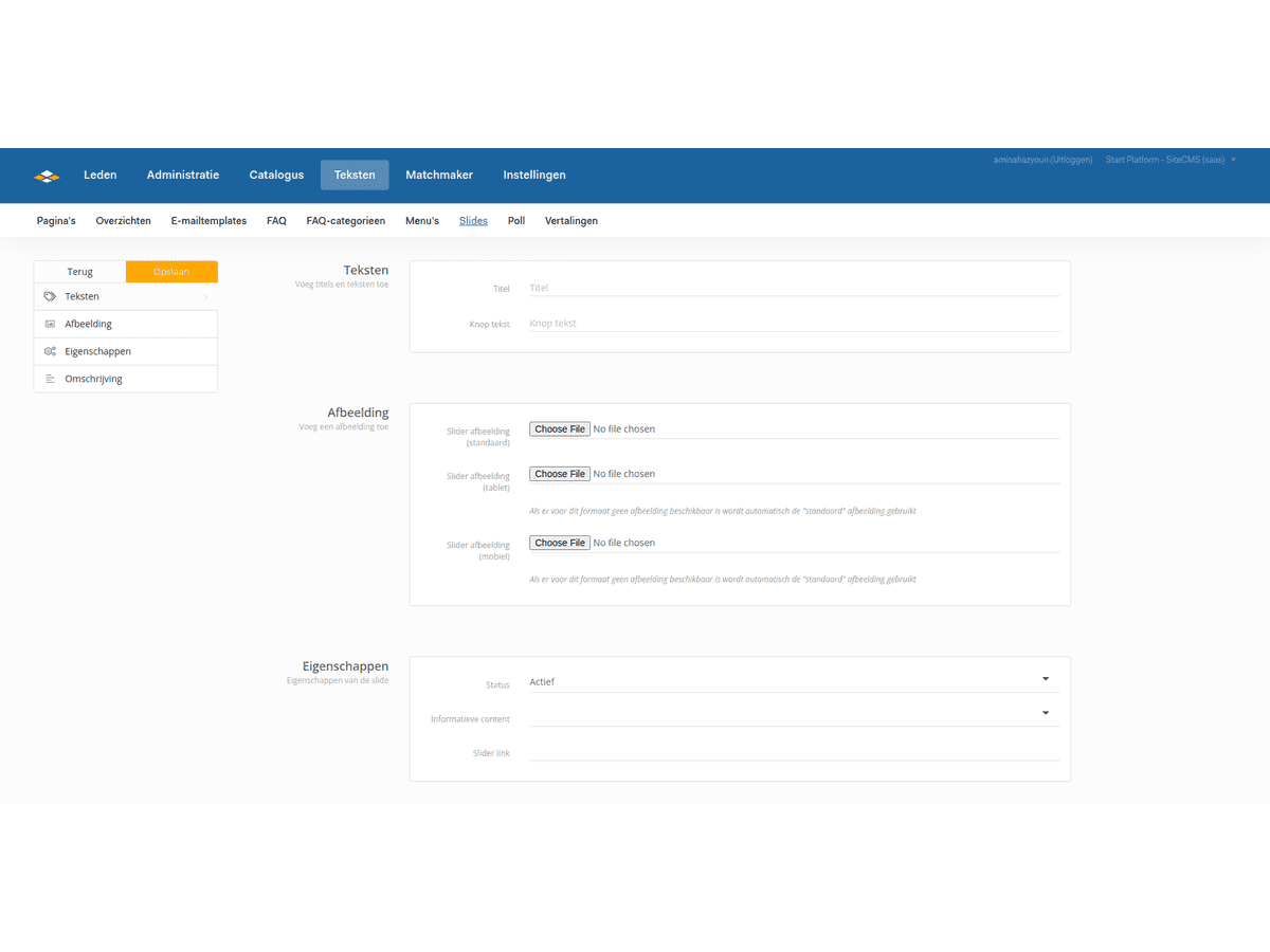 - Gehen Sie zu SiteCMS> Texte> Folien