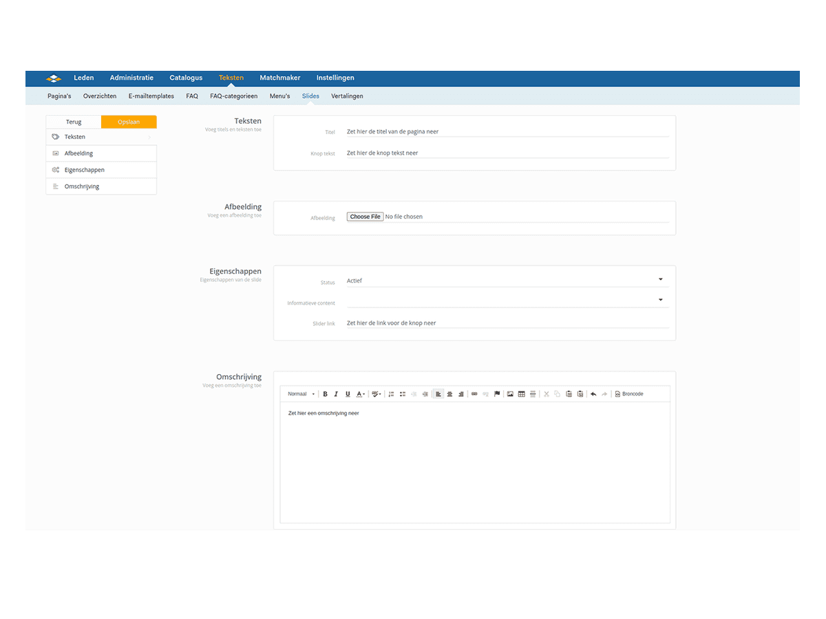 - Geben Sie bei 'Slider-Link' den gewünschten Link ein, auf den die Schaltfläche verweisen soll (verwenden Sie immer nur den Teil nach dem Domainnamen, also nach websiteurl.nl/.....)