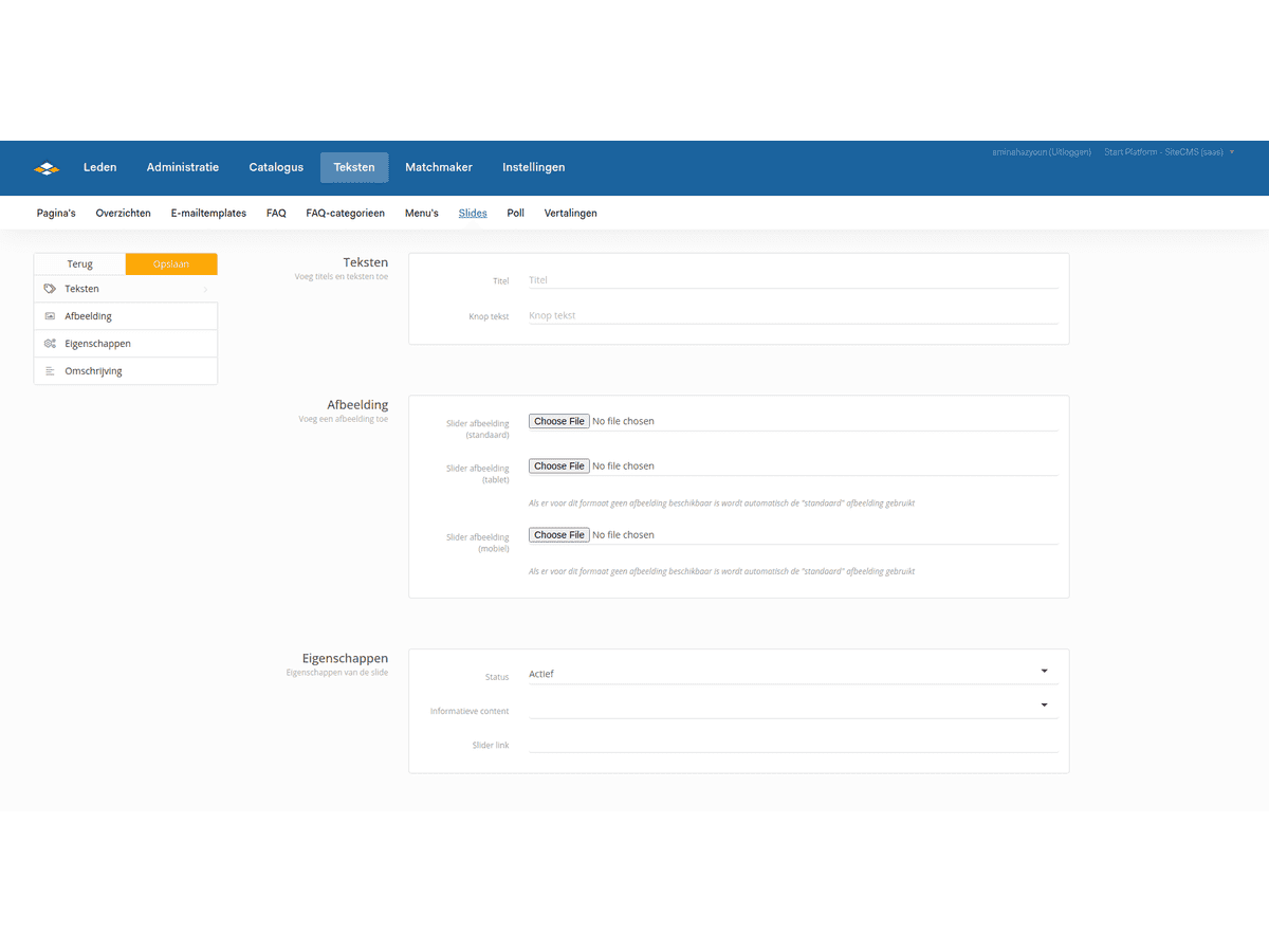 - Gehen Sie zu SiteCMS > Texte > Folien